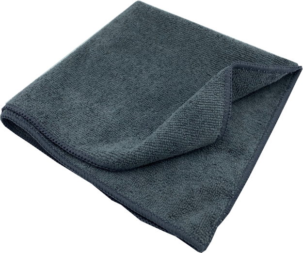 A handy microfibre 40 x 40cm dark grey cloth.